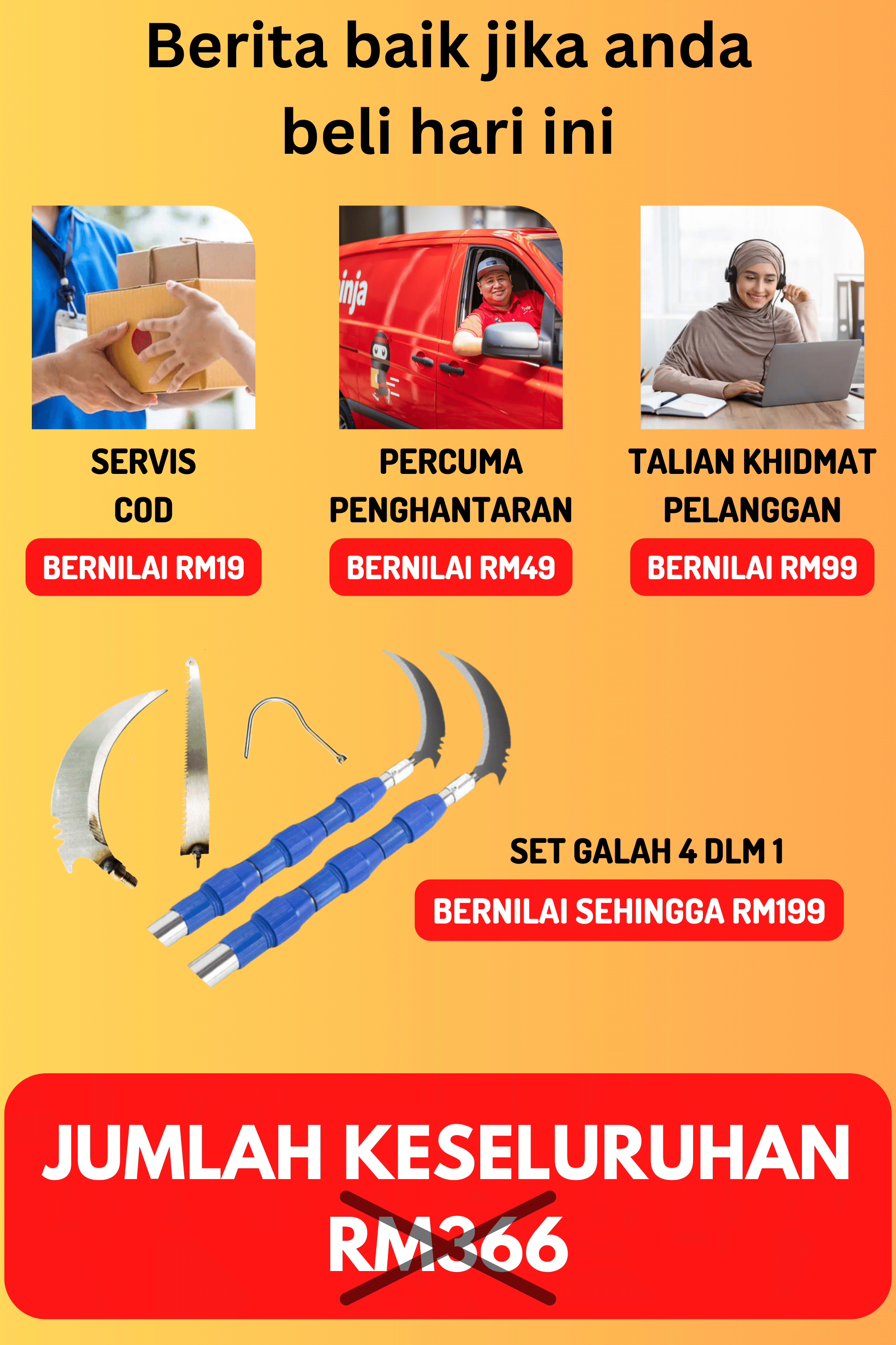 Nak potong dahan atau kait buah kait pelepah semua boleh.
