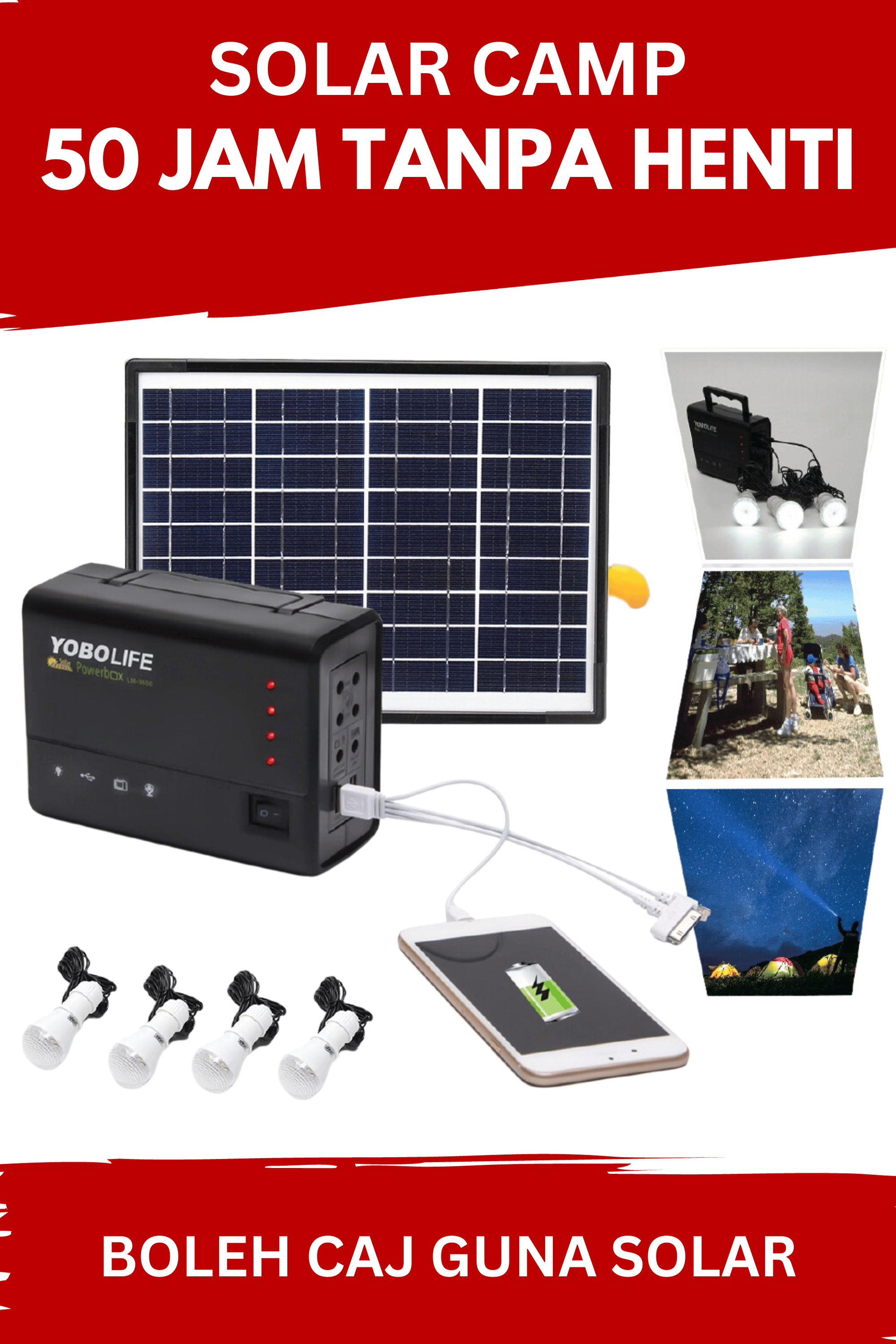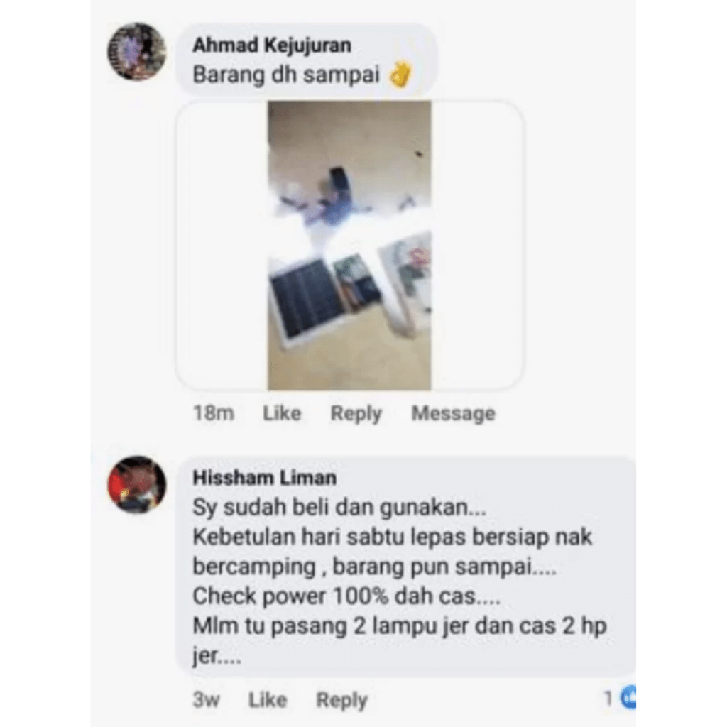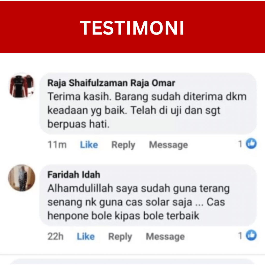 Juga boleh dijadikan sebagai alat kecemasan tau! Caj guna solar, dah boleh guna.